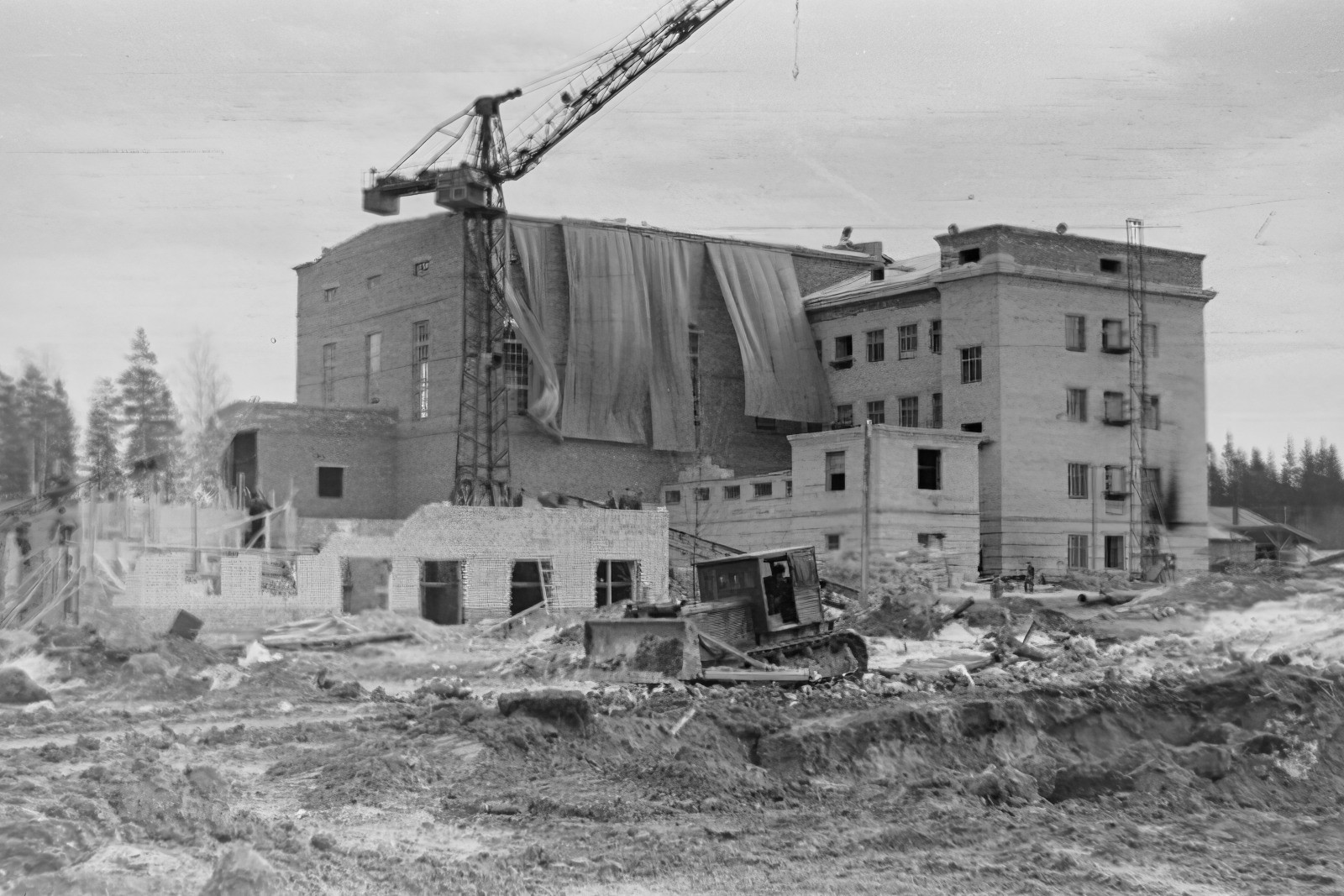 En zo kwamen L.I. Rusinov, A.P. Komar, P.P. Volkov en de auteur van deze notitie naar Gatchina om de twee voorgestelde locaties nabij de stad te bekijken. We arriveerden via de zwaar beschadigde Kievskoye-snelweg, langs open herfstvelden zonder enige bomen naast de weg. Eén locatie werd aangeboden aan de zuidkant van de stad nabij het dorp Khimozi, vlakbij het Kolpansky-meer, en de andere aan de noordkant van de stad in de Orlovaya Roshcha. Pyotr Petrovich had beide locaties al bekeken en fungeerde als onze gids. We begonnen in Khimozi, waar het gebied met moerassen volledig open en goed zichtbaar was vanaf de snelweg. Dit was officieel de reden om Khimozi af te wijzen. Pyotr Petrovich had geruime tijd de locatie in Orlovaya Roshcha gekozen en nam ons eerst mee naar Khimozi om de mening van onze leidinggevenden in het voordeel van Orlovaya Roshcha te vormen. Na het sombere landschap met penetrante winden zagen we het prachtige bos. We begonnen onze rondleiding bij de huidige toegangspoort tot de PИЯФ, daarna gingen we naar de brug over de rivier de Teplaya. We bevestigden dat ons ‘object’ aan alle kanten door bos zou zijn omgeven. Op de plek waar nu de moderne toegangspoort staat, stond een goed bewaard gemaakt houten huis, en we bespraken zelfs hoe we het konden gebruiken, maar Pyotr Petrovich wees alle wensen van de wetenschappers resoluut af: “We slopen het huis om de ontwerpers niet te belemmeren”, en het werd afgebroken en verwijderd, zonder de handen van de ontwerpers te binden.